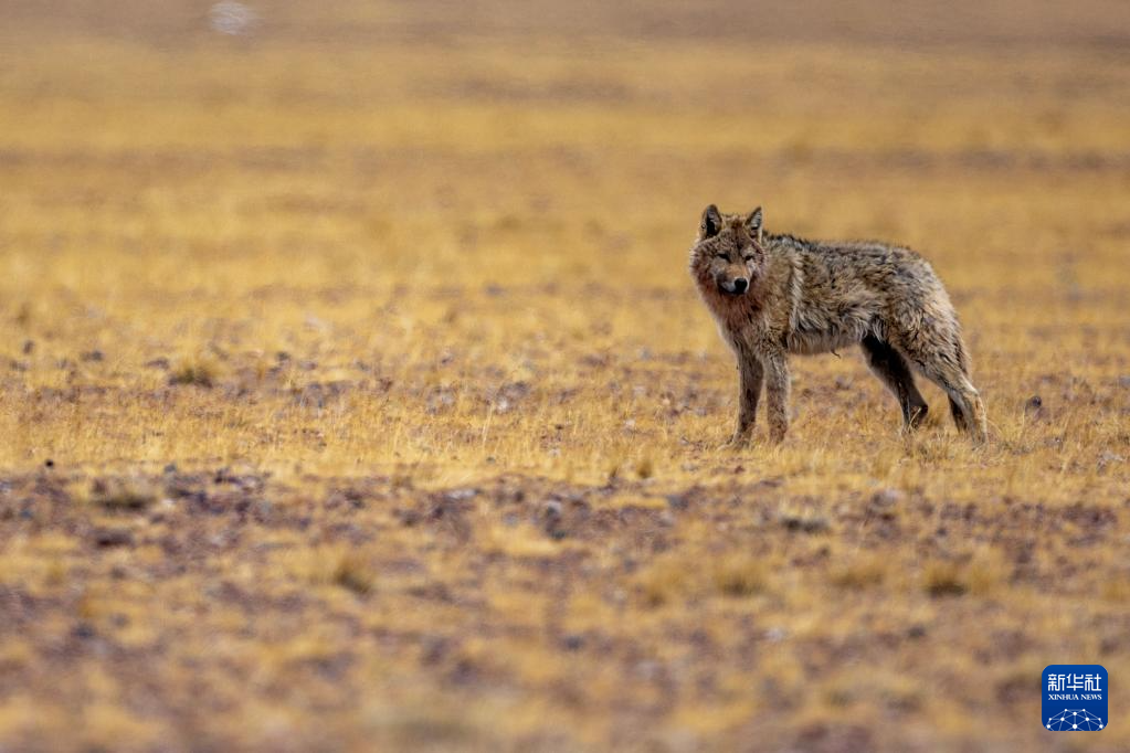 這是在西藏那曲市尼瑪縣境內(nèi)的羌塘國家級自然保護(hù)區(qū)核心區(qū)拍攝的狼(5月10日攝)。新華社記者 姜帆 攝 ??