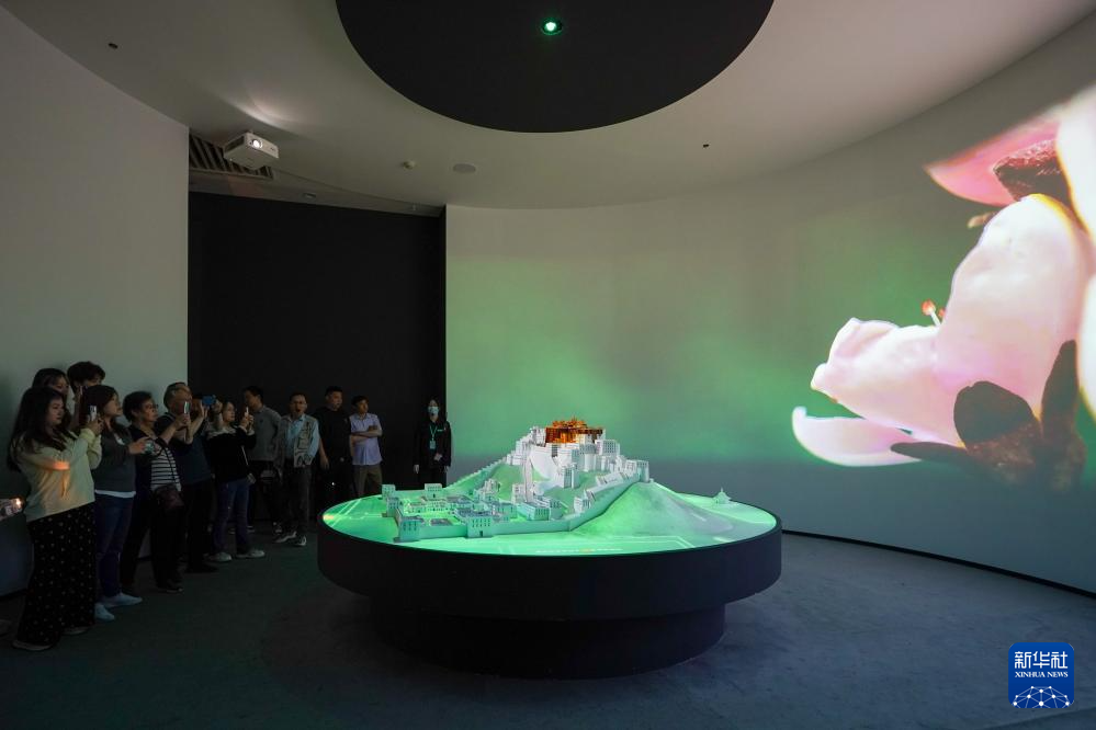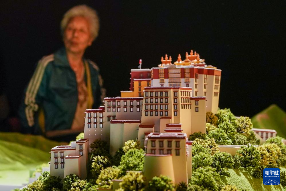 5月11日,觀眾在展出現(xiàn)場(chǎng)參觀拍攝布達(dá)拉宮模型。新華社記者 李博 攝