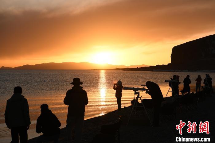 體驗(yàn)結(jié)束后,邀請(qǐng)嘉賓就座開始觀測星空,由西藏天文歷算有關(guān)專家簡要為游客講解天文歷算及星空觀象相關(guān)知識(shí)。現(xiàn)場擺放10臺(tái)星空觀測設(shè)備,供現(xiàn)場游客自行觀察納木錯(cuò)的星空。