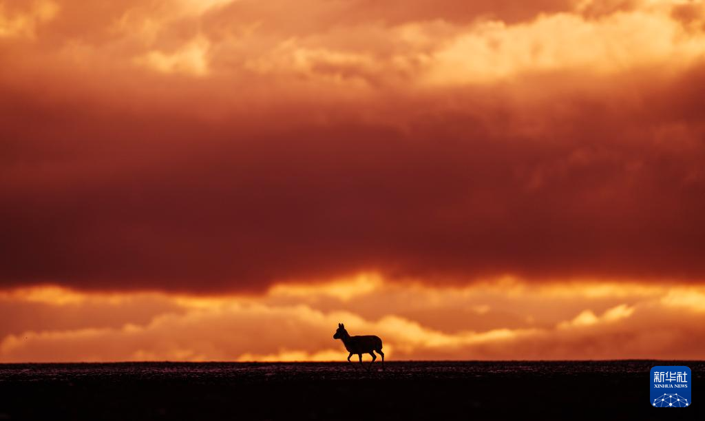 6月13日傍晚在羌塘國家級自然保護區(qū)拍攝的一只藏羚羊。新華社記者 費茂華 攝