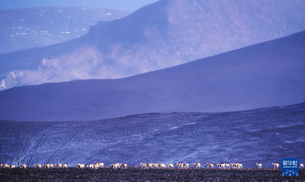 6月15日清晨在羌塘國家級自然保護區(qū)拍攝的遷徙中的母藏羚羊。新華社記者 費茂華 攝