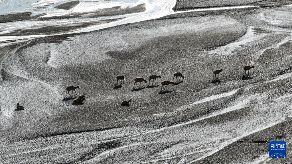 這是雪地中遷徙的藏羚羊(5月8日攝)。新華社記者 丁增尼達 攝
