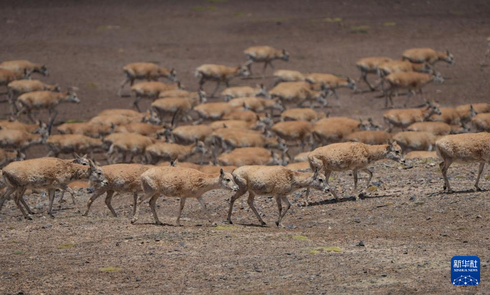 遷徙途中的藏羚羊(6月13日攝)。新華社記者 晉美多吉 攝