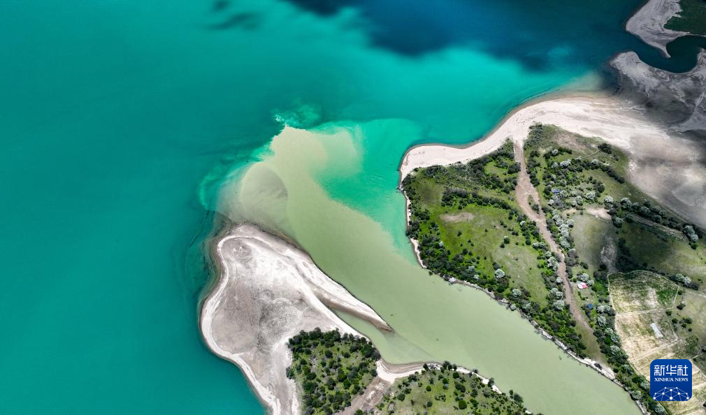 雪山環(huán)抱的巴松措(5月28日攝,無人機(jī)照片)。新華社記者 晉美多吉 攝 ??