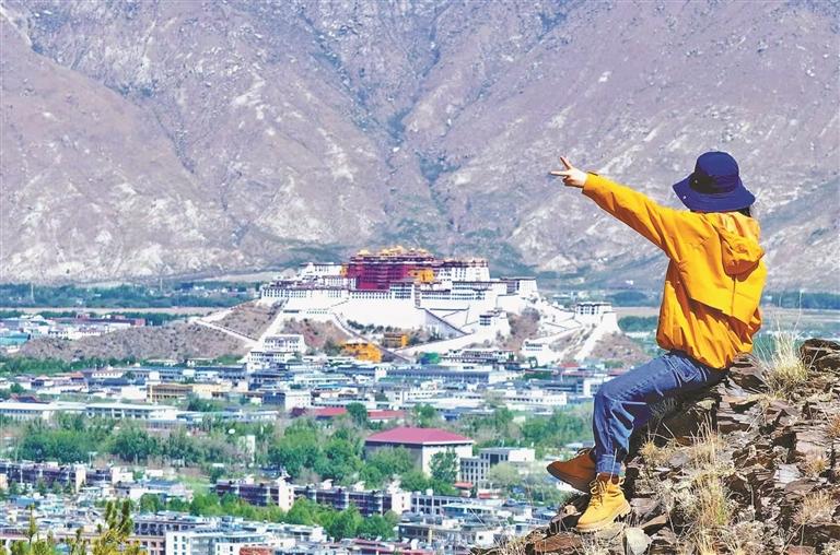 不知從何時起,拉薩以布達(dá)拉宮為背景的“旱地拔蔥”旅拍模式悄然興起。連日來,很多網(wǎng)友和游客專門來到拉薩打卡“旱地拔蔥”旅拍,畫面中藍(lán)天白云、雪山河流、城市村莊仿佛瞬間“起飛”。