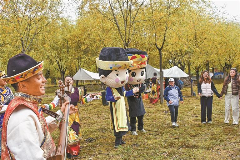 圖為徒步愛(ài)好者與“NPC”角色開(kāi)展歌舞互動(dòng)游戲。記者 劉楓 攝