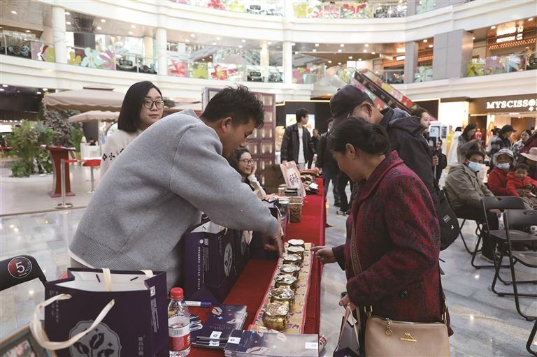 市集體驗環(huán)節(jié),工作人員向參會人員介紹特色產(chǎn)品。