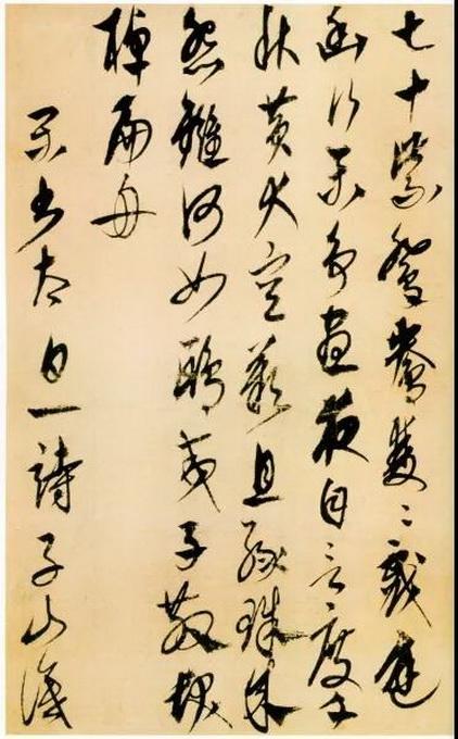 其草書豎幅《李白古風詩卷》,縱35.0cm,橫63.8cm,現(xiàn)藏日本東京國立博物館。書風勁健清新,善以懸腕作書,行筆爽利干脆,結體縱長,流暢而不浮滑,但是往往在最后一筆用力一挑或一頓,難免顯得有些刻露。在當時世趨趙孟頫書風的情況下,能走出自己的道路,作為杰出的少數(shù)民族書法家特立于書壇。