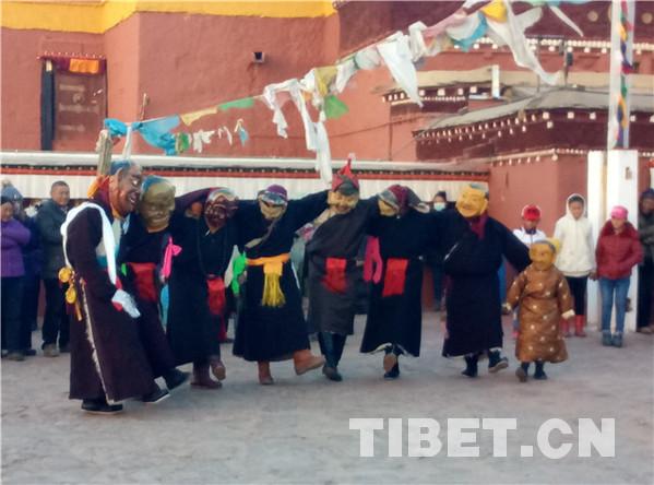 據(jù)了解,在藏歷十月三十白天,婦女們給孩子和自己洗發(fā),準(zhǔn)備過(guò)年的材料,如釀制青稞酒、制作油炸果子等。晚上10點(diǎn)左右,家中派出男性,舉行驅(qū)鬼儀式。大年初一的上午,全村的男人們騎上駿馬,到村落的山神處祭祀,更換經(jīng)幡,誦經(jīng)祈福。各家各戶回家后就在家中聚會(huì),一般是不出去的,個(gè)別時(shí)候,家中派出兩三個(gè)青年男女手持青稞酒和酒碗,端著切瑪盒,切瑪盒內(nèi)裝有青稞、糌粑、五彩的吉祥草,帶上青稞酒,到隔壁鄰居或親戚家拜年,見(jiàn)面后,互相祝福吉祥,敬獻(xiàn)青稞酒,各自抓起對(duì)方切瑪盒內(nèi)的青稞粒拋向空中,摔三下,祭拜天、地、神,祈禱新年吉祥如意。