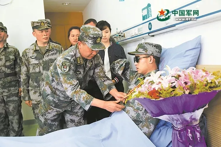 2018年11月24日,南部戰(zhàn)區(qū)陸軍云南掃雷大隊在病房內為杜富國舉行頒授一等功獎章和證書儀式。周賢軍攝