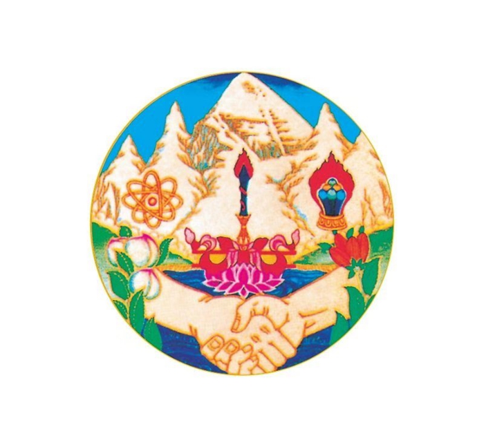 圖為十世班禪大師親自設(shè)計并請畫家洛松向秋付諸筆端的援助西藏發(fā)展基金會徽標。