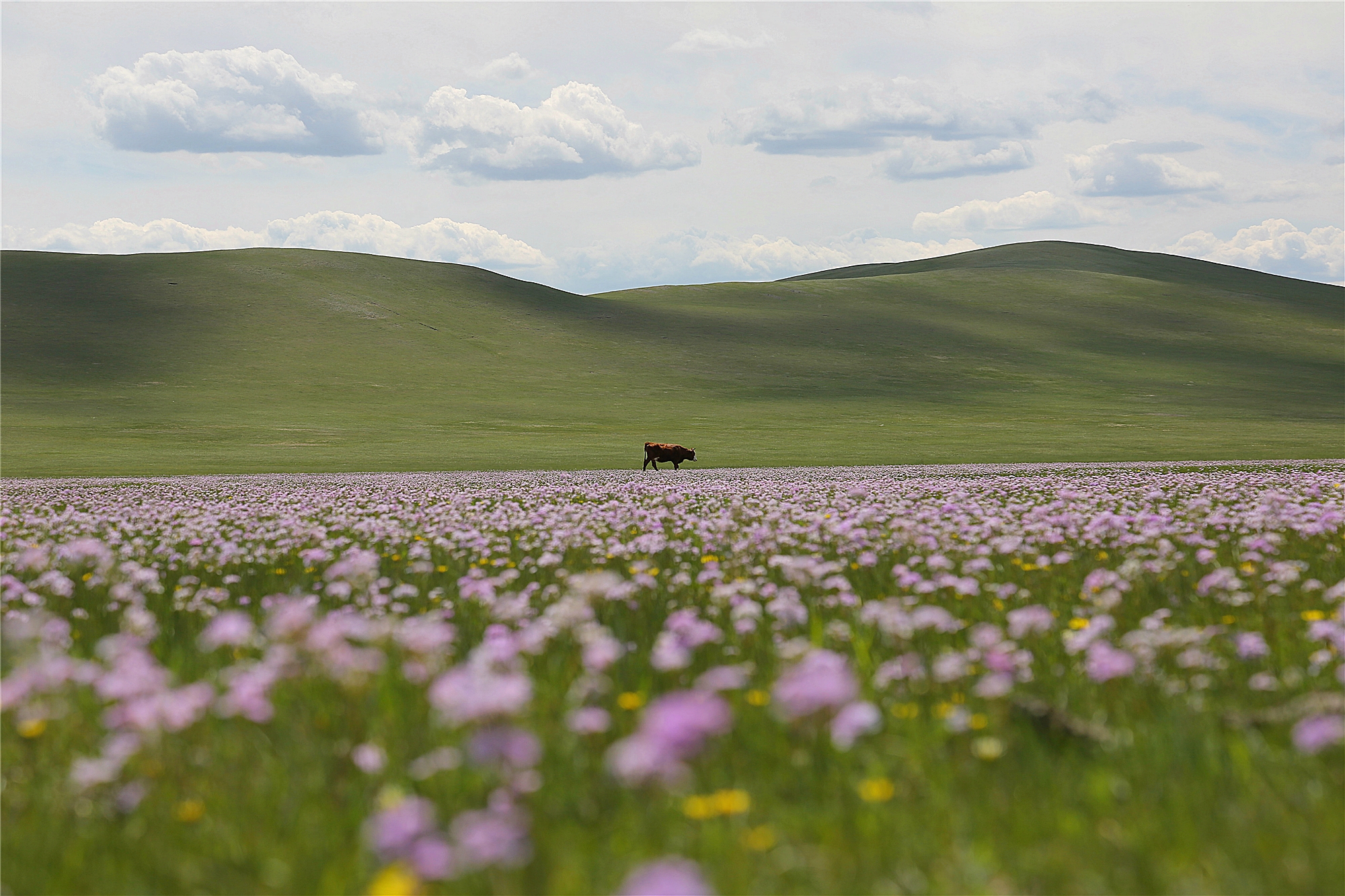 這是在扎魯特旗拍攝的草原花海(2020年6月5日攝)。進入夏季,內(nèi)蒙古自治區(qū)通遼市扎魯特旗北部山地草原生機勃勃。