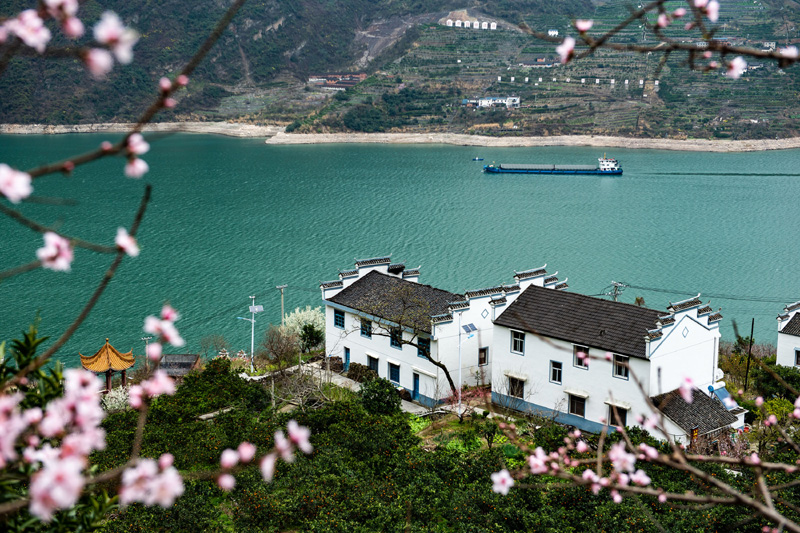 這是2021年2月27日在三峽庫區(qū)秭歸縣屈原鎮(zhèn)西陵峽村拍攝的鮮花盛開的臍橙園。湖北省宜昌市秭歸縣在建設美麗鄉(xiāng)村中,因地制宜,在臍橙園里種植桃樹、李樹等果樹。