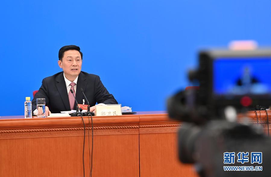 這是郭衛(wèi)民在主會場回答記者提問。新華社記者 李鑫 攝