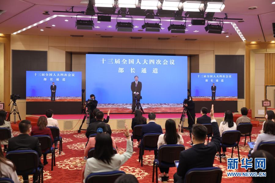 3月5日,第十三屆全國人民代表大會(huì)第四次會(huì)議舉行首場“部長通道”采訪活動(dòng)。這是記者在分會(huì)場通過網(wǎng)絡(luò)視頻方式提問。新華社記者 曹燦 攝