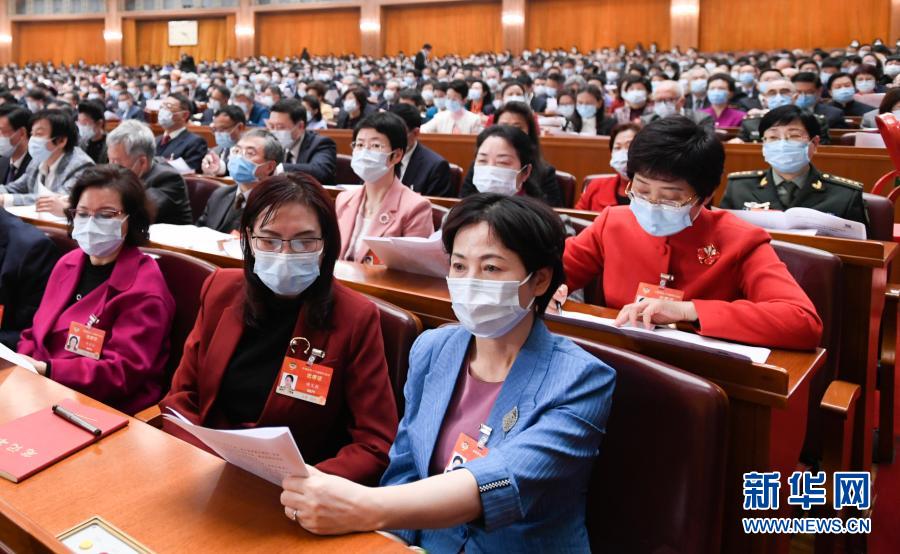 3月8日,十三屆全國人大四次會議在北京人民大會堂舉行第二次全體會議。這是幾位女代表在認真聽會。新華社記者 丁林 攝
