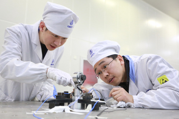 中國航天科技集團公司的青年科研人員在做產(chǎn)品試驗。