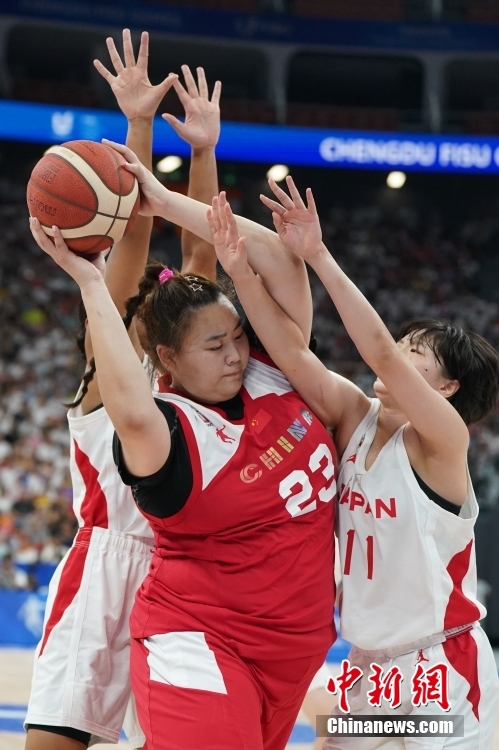 8月5日,第31屆世界大學(xué)生夏季運動會女子籃球決賽在四川成都舉行,中國隊99:91戰(zhàn)勝日本隊獲得冠軍。圖為中國隊球員劉禹彤(紅衣,23號)在比賽中進(jìn)攻。