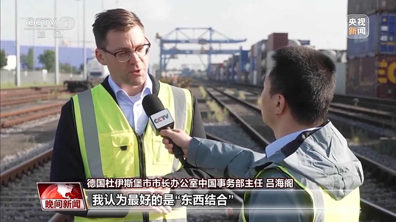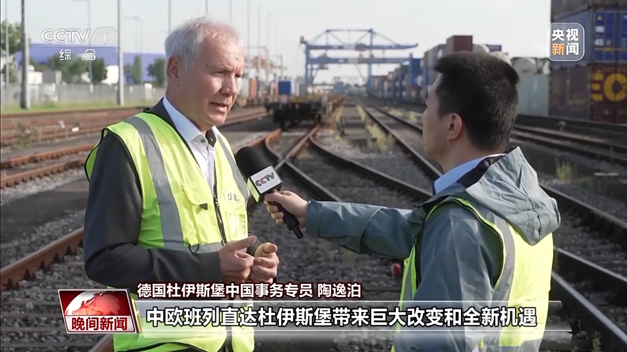 德國(guó)杜伊斯堡中國(guó)事務(wù)專(zhuān)員 陶逸泊:中歐班列直達(dá)杜伊斯堡帶來(lái)巨大改變和全新機(jī)遇。這條線路綿延上萬(wàn)公里,從中國(guó)出發(fā)穿越6個(gè)國(guó)家,抵達(dá)我們這里。一切工作能在十幾天內(nèi)完成,非常了不起。