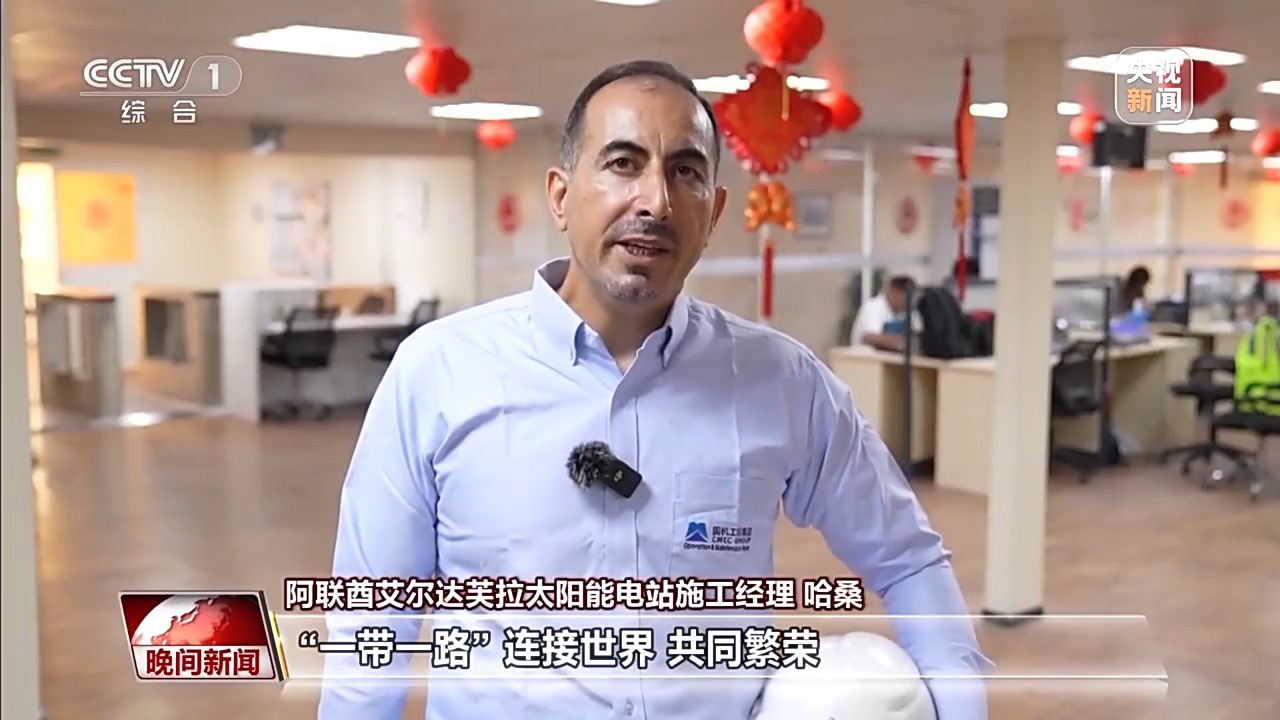 阿聯(lián)酋艾爾達(dá)芙拉太陽(yáng)能電站施工經(jīng)理 哈桑:“一帶一路”連接世界,共同繁榮。